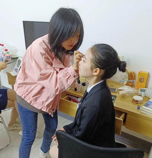 旅游类(酒店工种)考试中,部分考生因为不习惯穿高跟鞋,机考开考在即还未到达检录处,酒店管理教研室杨丹老师见状,迅即骑上电动车接送穿高跟鞋的考生。得知有带队老师希望为考生缝补衣服,杨丹老师欣然陪同前往超市购买针线等生活用品。2020级酒店管理专业员工吉艳玲得知来自家乡的学妹不会化妆盘头,早上6:00左右就等候在考场外帮学妹们做造型。