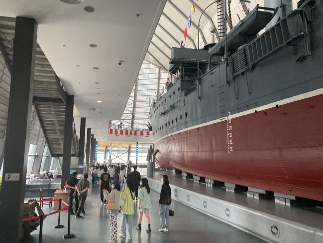 随后,师生一行环绕中山舰舰体有序参观,深为中山舰传奇的爱国故事和文物价值所吸引。重温历史记忆,抚今追昔,大家深受触动,接受了一次生动的爱国主义教育。