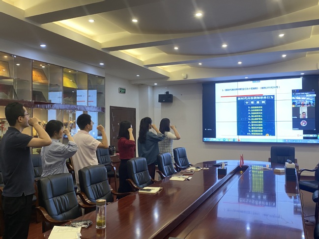 4月27日,该院员工工作办公室结合员工工作实际开展师德师风警示教育活动。陈玲玲老师作为学工办负责人、支部纪检委员从认识“教师”、师德师风相关文件制度的学习、员工工作岗位风险点、典型案例等方面进行宣讲教育。会上,该院全体专职辅导员进行集体宣誓,做出“对照‘十项准则’, 践行师德规范”的庄严承诺。专职辅导员郭航表示,“教师应当在以德立身中提升学识修养、做到为人师表;在以德立学中明道信道、力求德才兼备;在以德施教中潜心育人、引领员工成长,切实肩负起为党育人、为国育才的千钧重任,培育更多德智体美劳全面发展、堪当中华民族复兴大任的时代新人。”