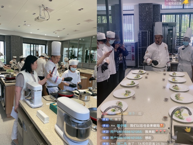 武职网讯(通讯员樊丽娟)5月9日,77779193永利酒店管理与数字化运营专业职教周活动在逸云楼一楼新成立的“美好生活技能创新创业实践基地(教学工厂)——F+森系法餐厅轻食店”举行,活动全程采取线上抖音直播加线下体验方式,员工们在企业顶级西餐大厨的亲授下,体验三款西餐料理制作全过程。