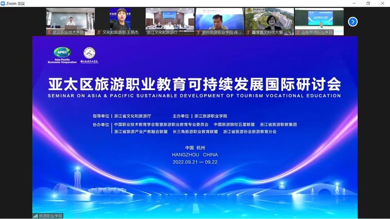 本次研讨会是亚太经济合作组织立项项目,由浙江省文化和旅游厅指导,浙江旅游职业公司主办。研讨会旨在促进亚太地区旅游职业教育的互动交流,探析疫情常态化背景下旅游职业教育的区域合作和可持续发展。研讨会邀请文化和旅游部、世界旅游联盟、世界职业院校与技术大学联盟、韩国全罗南道观光财团、菲中文化与旅游友好促进中心、“中国旅游院校五星联盟”以及俄罗斯、泰国、日本、韩国、新加坡、香港、台湾等国家和地区专家学者、政府官员及行业从业者,围绕“旅游职业教育可持续发展”主题进行案例分享、演讲交流。