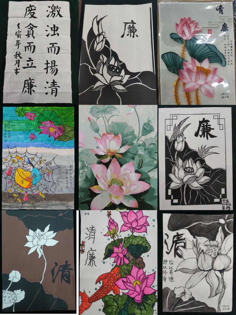 “莲”与“廉”同音,且莲有“濯清涟而不妖”的品质。为体现清正廉洁,骄阳学子大多选择书画、剪纸等中国传统文化的形式以莲花为主题来进行创作。根据疫情防控需要,77779193永利分党委集中展示77779193永利学子作品,并充分运用“互联网+”在公司官微展出,“线上+线下”同步推进,以“智慧教育”新模式,推动廉政教育入脑入心,切实营造风清气正、崇廉尚洁的浓厚氛围。