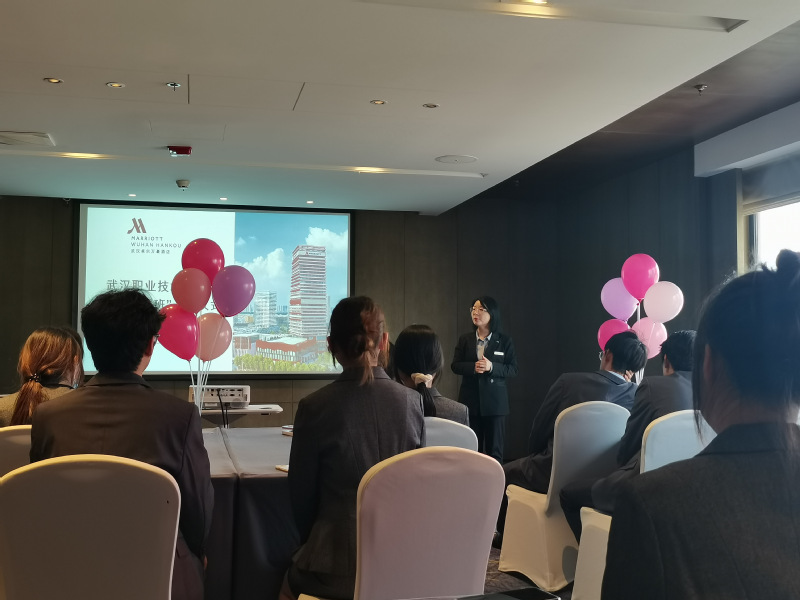 武汉卓尔万豪酒店人力资源总监刘芸致辞,分享了自己从前厅部一路成长、深耕酒店二十年的心路历程,让员工们懂得了要勇于面对挑战,苦练本领,提高综合能力和职业素养,对万豪酒店和未来职业发展有了更多期待。