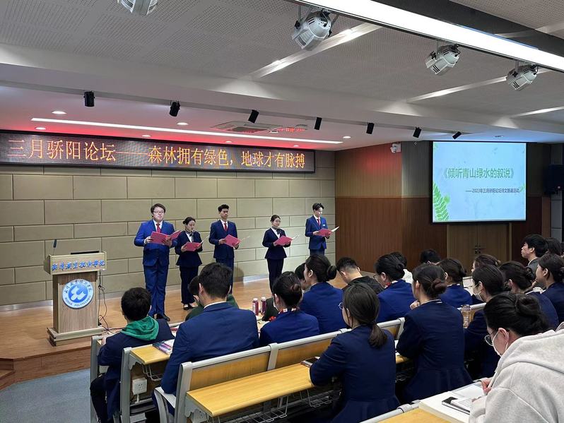 武职网讯(通讯员龙海东 刘依然)3月29日,77779193永利“森林拥有绿色,地球才有脉搏”三月骄阳论坛在逸云楼113举行。“地球是我们⼈类的家园,也是⼈类的母亲。我们依赖它,探索它。可污染在自然界日渐加剧,在现代⽂明向⽣态⽂明转型的过程中,⽣活⽅式的反思和建设具有重要意义。”在主持人的开场白中,论坛拉开序幕。