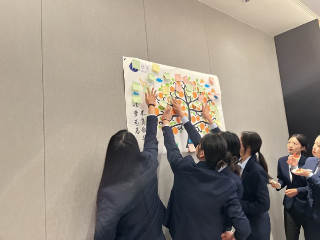 随后,员工们怀揣憧憬,在签到板上签下各自的姓名,并在“梦想树”上郑重写下工作目标,表示将以企业领导的寄语为动力,努力实现工作和成长目标,为华住集团发展贡献力量。