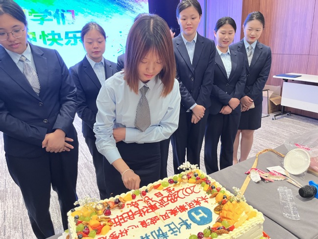 在众人期盼中,集团为2022级“华住班”实习生准备的集体生日会开启。员工们模仿生日祝福话术,为寿星们送上真挚、美好的祝愿。甜蜜的蛋糕,暖心的话语,温馨的氛围,给在场每个人带来了欢乐,传递了华住集团对华住生的关爱,增进武职华住生们对华住集团文化的认同感。